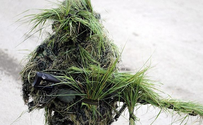 A German sniper is covered from head to toe with grass in Munster on June 15, 2009. Photo: IC - hexun.com