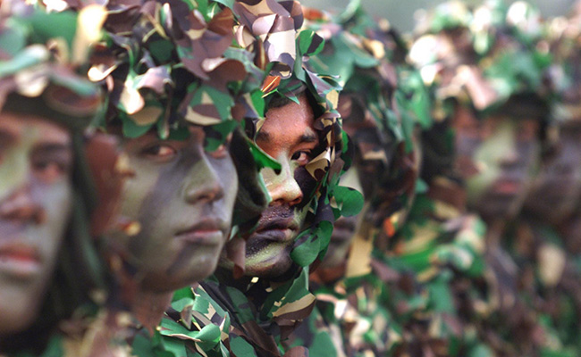 Nicaraguan soldiers wear foliage camouflage during a military exercise celebrating their army’s 29th anniversary in Leon on August 21, 2008. Photo: ifeng.com