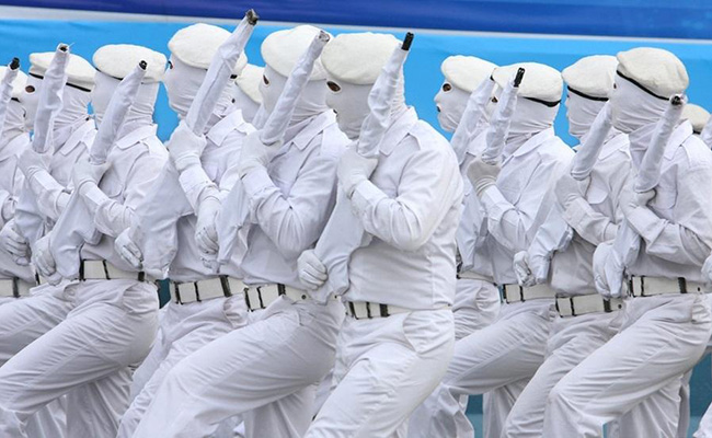 Soldiers dressed in white uniforms march during a military parade in Teheran, Iran on April 18, 2010. Photo: IC - hexun.com