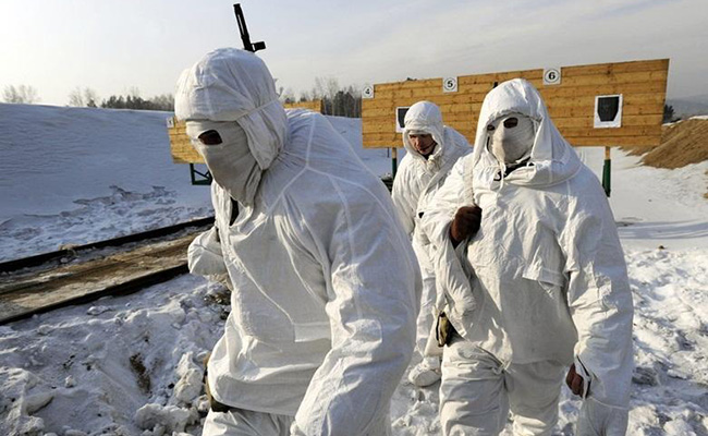 Russian soldiers wear snow camouflage during shooting exercises on February 22, 2011. Photo: IC - hexun.com