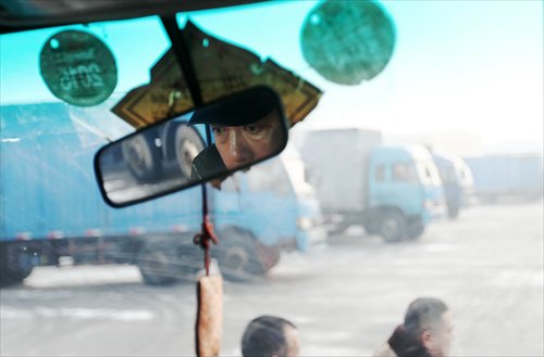 Zhang waits in his truck for the customs formalities on the morning of January 26. Photo: Cui Meng/GT