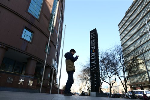 Inset: A man standing in front of the flagship branch of Cashbox Party World KTV on Beijing's Chaoyangmenwai Street Photo: IC