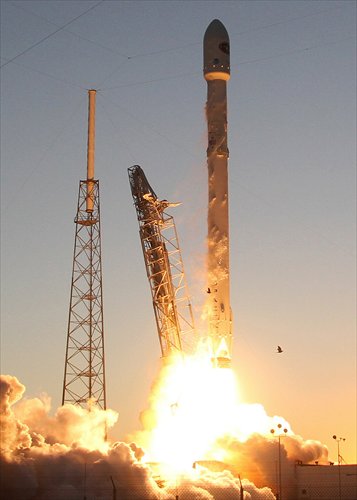 A SpaceX Falcon 9 rocket blasts off the launch pad on Wednesday, carrying the NOAA's Deep Space Climate Observatory spacecraft that will orbit between the Earth and the sun. Photo: CFP