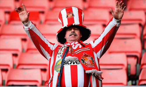 A Sunderland fan poses at the Stadium of Light before the English Premier League match between Sunderland and Liverpool on January 10 in Sunderland, England. Photo: CFP
