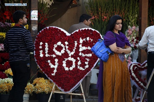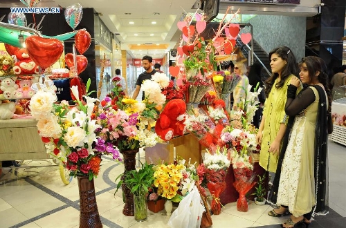 Pakistani people buy flowers on Valentine's Day in Islamabad, capital of Pakistan on Feb. 14, 2015. (Xinhua/Saadia Seher)