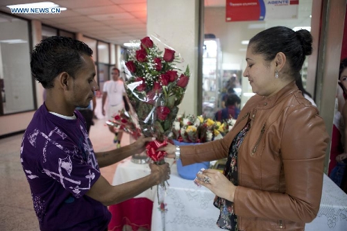 A person buys flowers in the city of Tegucigalpa, Honduras, on Feb. 14, 2015, the Valentine's Day. (Xinhua/Rafael Ochoa)