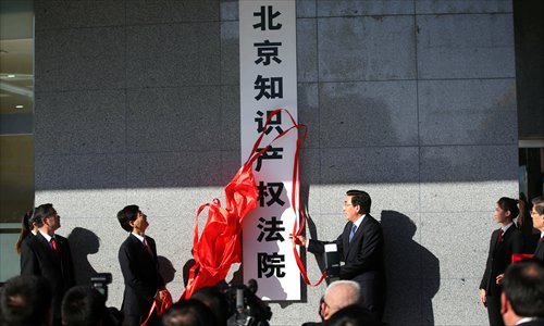 Senior officials unveil the official opening of the Beijing Intellectual Property Court on November 6, 2014. Photo: CFP