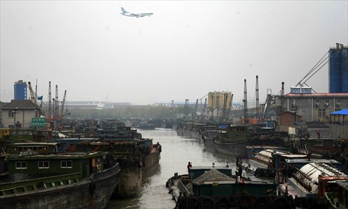Hundreds of freight boats sit in a traffic jam on the Suzhou River in Shanghai on March 21, 2009. Photo: CFP