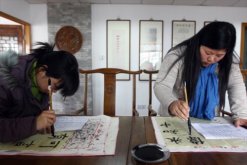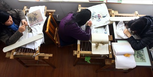 These embroiderers are accomplished calligraphers and artists as well. Photo: Yang Hui/GT