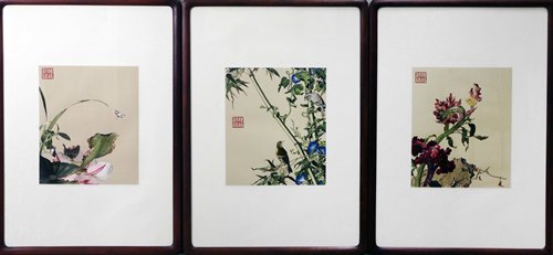 It takes more than 10 years to be a qualified Gu embroiderer and 20 years or longer to be a master. Gu embroidery is unique in that it reproduces the artworks of masters from different dynasties. To be a successful Gu embroiderer you have to be an accomplished painter and calligrapher. A Gu embroiderer is involved with every facet of her work, from selecting materials, drawing the outline, choosing the threads from the nearly 1,000 colors available, sewing and then fitting the work in a frame. It can take years to complete one of these exquisite works. The institute's nine embroiderers spent three years reproducing 16 paintings by Giuseppe Castiglione (1688-1766) the Italian missionary and court painter.