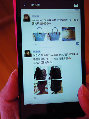 Handbags and backpacks posted on a WeChat Moments shop Photo: Ni Dandan/GT