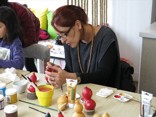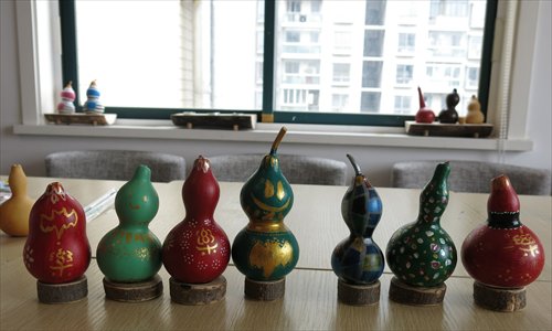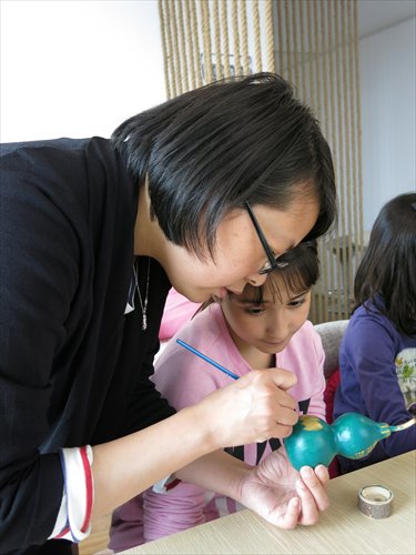 "My daughter didn't know about gourds before this class, so I think it's a good experience for her," French mother Laetitia Mauroy told the Global Times during the gourd workshop, which they attended together. "She likes being creative, so we wanted to try gourd painting because it's an important symbol of Chinese culture."