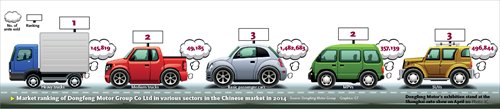 Dongfeng Motor Group's annual revenue in 2014 was 80.95 billion yuan, an increase of 117.3 percent compared to 2013, according to its financial results released in March.