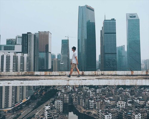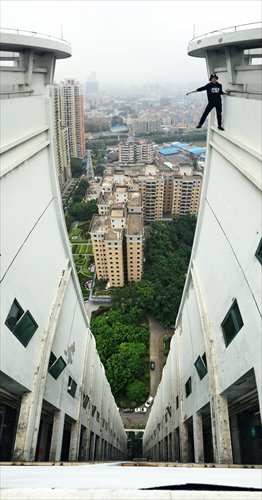 A man tries rooftopping in Guangzhou, Guangdong Province. Photo: Courtesy of Liang Zhongkang