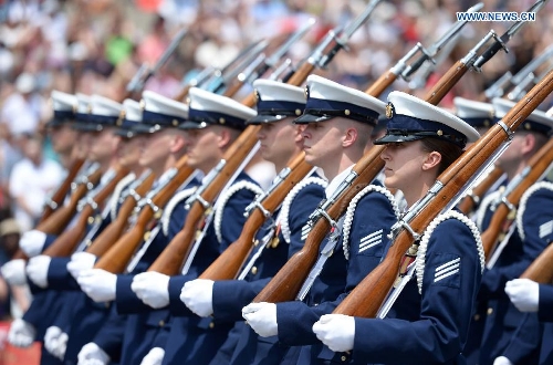 Members of US honour guard participate in a Memorial Day parade on Constitution Avenue in Washington D.C., the United States, on May 25, 2015. The Memorial Day is a United States federal holiday observed on the last Monday of May. (Xinhua/Yin Bogu)