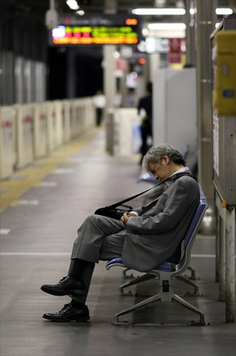 A Japanese man takes a nap on a bench at a Tokyo train station. Photo: AFP