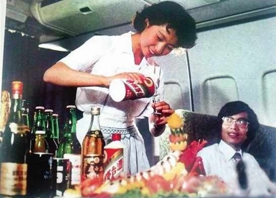 It was CAAC policy in 1975 to give passengers aboard any international a free bottle of Moutai, a high-end Chinese liquor. That courtesy later changed to free-flow Moutai during their journey. The policy was phased out at the end of the 1980s. Photo: Xinhua