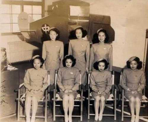 The first CNAC flight crew attends class at a training center in September, 1947. Up until January 1938, CNAC only employed a total six stewardesses. Photo: Xinhua