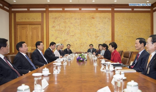 Visiting Chinese top legislator Zhang Dejiang met in Seoul Thursday with South Korean President Park Geun-hye, with both sides pledging to further expand their all-round practical cooperation.