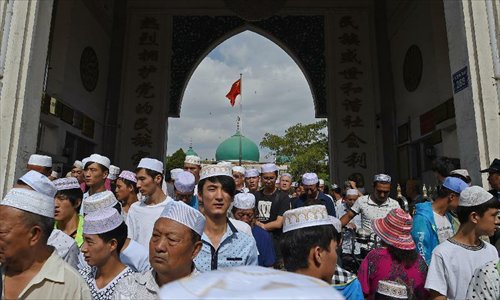 Muslims leave after attending prayer session on Eid al-Fitr at the Nanguan Mosque in Yinchuan City, capital of northwest China's Ningxia Hui Autonomous Region, July 18, 2015. Millions of Muslims across China began celebrating Eid al-Fitr, which marks the end of the Islamic holy month of Ramadan. Photo:Xinhua