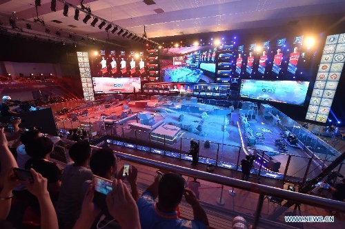 Audience watch the finals of "RoboMasters" 2015 Robocon in Shenzhen, south China's Guangdong Province, July 19, 2015. A total of 32 teams took part in the finals. Students from University of Electronic Science and Technology of China claimed the championship of 2015 Robocon. (Xinhua/Mao Siqian)