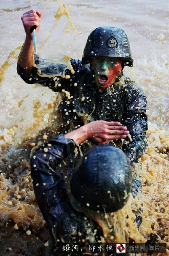 A soldier receives training in north China's Guangzhou provincial military area command. (Photo source:Xinhuanet)