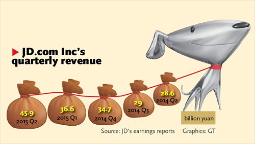 JD.com Inc, China's second-largest e-commerce site by sales, has released its financial report for the second quarter of 2015 and announced investment into an off-line supermarket.