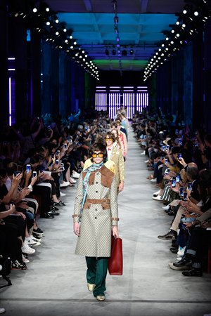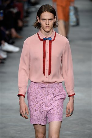 Led by Michele, Gucci's mix of men's and women's clothing has entered new territory: Male models in see-through laces tops, necks decorated with long ribbons and various flower prints were no small shock to audiences.