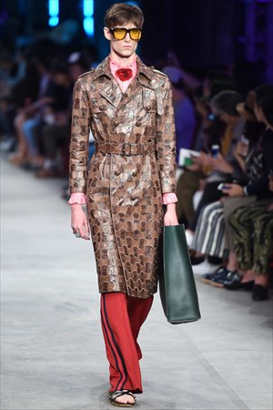 Alessandro Michele, the new creative director for Gucci, mixed elements from traditional men's and women's clothing for the Gucci Spring/ Summer 2016 Menswear Fashion Show. His concepts closely followed figures from ancient Greek mythology and the aestheticism represented by that culture. According to Michele, Dionysus, the god of wine, is his muse.
