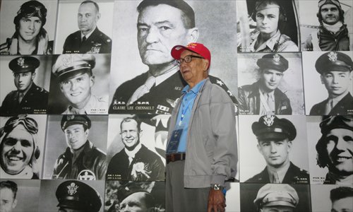 A veteran from the Flying Tigers, an air squadron led by US General Claire Lee Chennault to help China drive out invading Japanese troops during World War II, visits a Flying Tigers exhibition in Kunming Museum on Sunday in Kunming, Yunnan Province. Photo: IC
