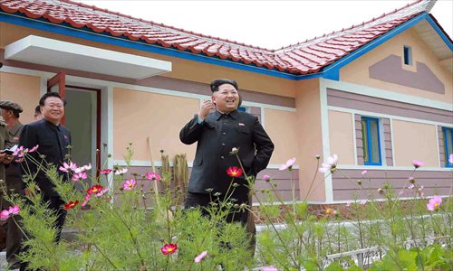An unidentified picture released from North Korea's official Korean Central News Agency on Monday September 14, showing North Korean leader Kim Jong-Un during an inspection of the Paektusan Hero Youth Power Station construction site in Ryanggaung province. Photo: AFP