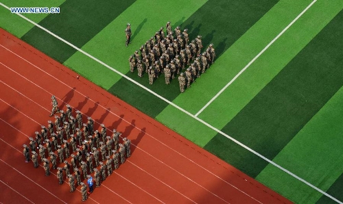 Newly-enrolled college students take part in a military training at Hezhou Collge in Hezhou, south China's Guangxi Zhuang Autonomous Region, Sept. 21, 2015. Military training is a compulsory course for Chinese college students. Photo: Xinhua