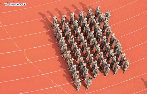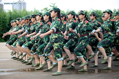 Newly-enrolled college students take part in a military training at the Binhaizhong Campus of Tianjin University of Technology in Tianjin, north China, Sept. 21, 2015. Military training is a compulsory course for Chinese college students. Photo: Xinhua