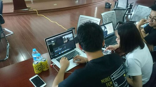 Participants at Techyizu's Mobile Film Challenge edit together their short film. Photo: Courtesy of Noah Solnick
