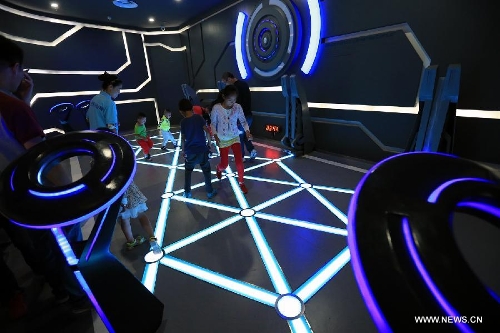 Tourists visit the "East Dream, Future World" aerospace theme park in Sanhe, north China's Hebei Province, Sept. 27, 2015. The theme park covers an area of 33,700 square meters, including 13 interactive exhibitions and 18 interactive games. (Xinhua/Li Mingfang)