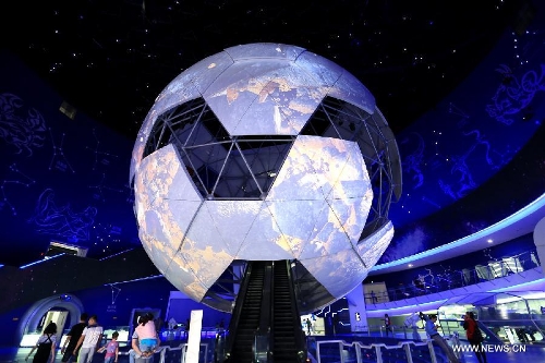 Photo taken on Sept. 27, 2015 shows the exhibition hall of the "East Dream, Future World" aerospace theme park in Sanhe, north China's Hebei Province. The theme park covers an area of 33,700 square meters, including 13 interactive exhibitions and 18 interactive games. (Xinhua/Li Mingfang)