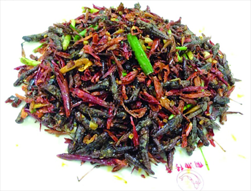 While China is famed for its colorful cuisine that encompasses such favorites as chicken feet and duck blood, its insect dishes are less well-known, but for many people equally bizarre. These include such hearty fare as locusts, stick insects and bee pupae, which are often deep-fried and seasoned.