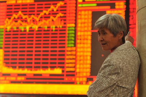 An investor checks stock market prices at a securities firm in Fuyang, East China's Anhui Province on Friday. Photo: CFP