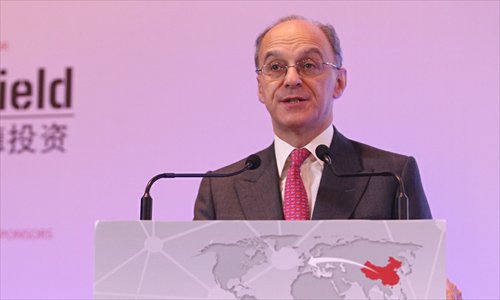 Lord James Sassoon, the chairman of CBBC, gives a speech at the annual China Outbound Conference. Photo: Courtesy of CBBC