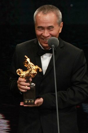 Hou Hsiao-hsien accepts his Golden Horse awards in Taipei on Saturday. Photos: CFP