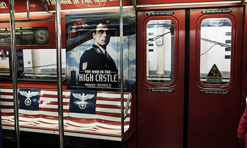 Local transportation authorities allowed the company to color seats on the Times Square shuttle with the symbols laid over the US flag to promote "The Man in the High Castle."