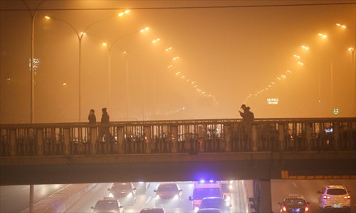 A smoggy Beijing street Photo: CFP