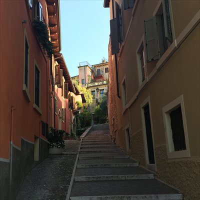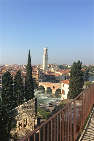 At the Ponte Pietra, I noticed there was a hotel immediately close to the bridge's gate tower. Its balconies were covered by vines and was located in such a way that you wouldn't have thought to give it a second look.