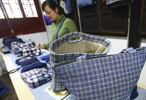 Products made from Chongming hand-woven cloth on sale at a local store. Photo: Yang Hui/GT