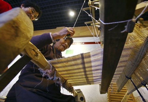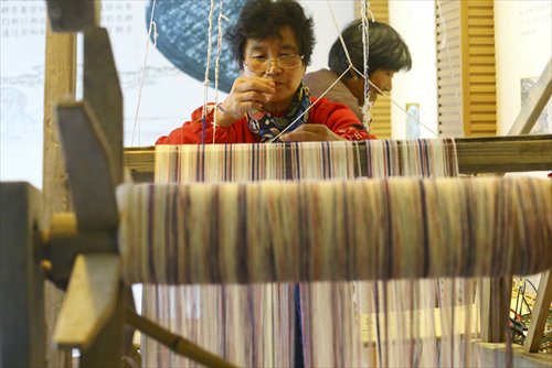 It's intricate work turning yarn into cloth on a loom. Photo: Yang Hui/GT