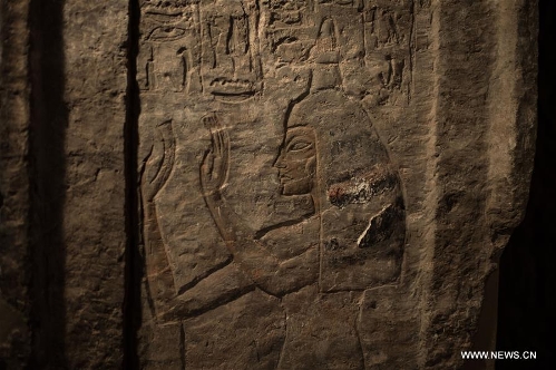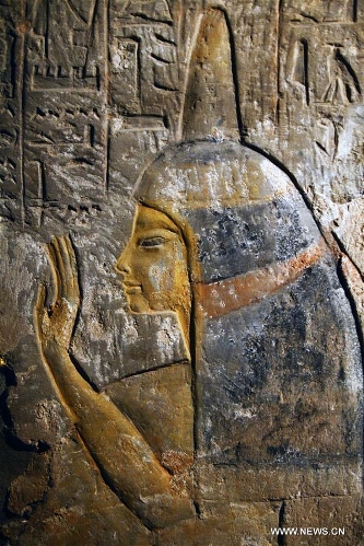 The image of Maia, the wet-nurse of ancient Egyptian king Tutankhamun, is seen at her tomb located in Saqqara of Giza province, 30 kilometers south of Cairo, Egypt, on Dec. 20, 2015. The tomb of Maia, discovered by French archeologist Alain Zivie in 1996, will be open to the public soon, according to Egypt's Ministry of Antiquities. (Xinhua/Ahmed Gomaa)
