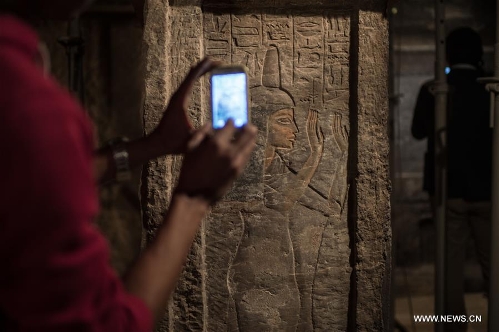 Journalists take photos and video clips of a pillar inside the tomb of Maia, the wet-nurse of ancient Egyptian king Tutankhamun, in Saqqara of Giza province, 30 kilometers south of Cairo, Egypt, on Dec. 20, 2015. The tomb of Maia, discovered by French archeologist Alain Zivie in 1996, will be open to the public soon, according to Egypt's Ministry of Antiquities. (Xinhua/Ahmed Gomaa) 10