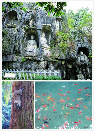 Lingyin is at its most beautiful in late autumn as the maple trees planted on both sides of the road to the site turn red and yellow, filling one with expectation for the trip ahead.