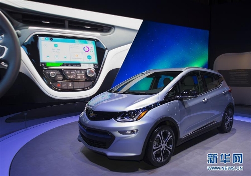 A General Motors Co. Chevrolet Bolt electric vehicle is displayed during the 2016 Consumer Electronics Show (CES) in Las Vegas, Nevada, the United States, Jan. 7, 2016. Onboard Internet and automated driving technology were the stars of this year's Consumer Electronics Show. The international gathering in Las Vegas, Nevada, is the world's biggest technology trade show. (Xinhua/Yang Lei)