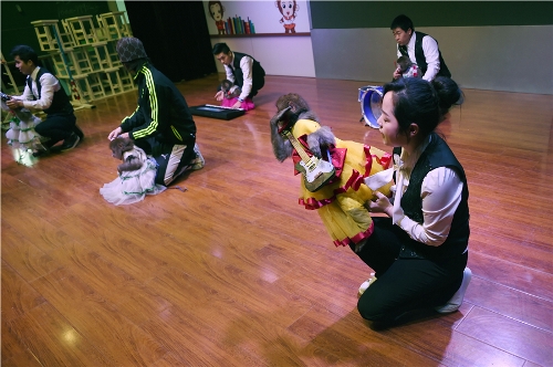 A monkey waits to put on a costume before a performance at a monkey training school in a zoo in Dongying, China's Shandong province. (Source: Chinadaily.com.cn)